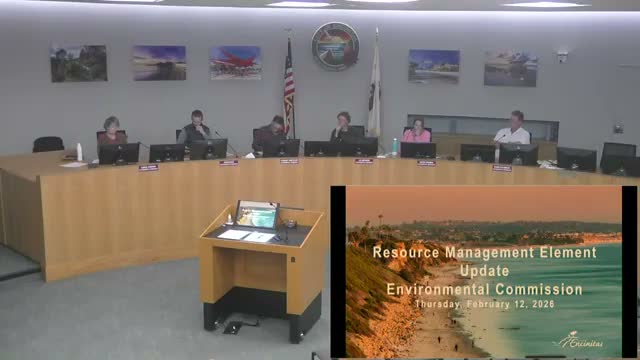 Planning staff and consultants told the Encinitas Environmental Commission on Feb. 2026 that a focused update to the city’s Resource Management Element is intended to meet new state law requirements, including equitable access to open space and habitat connectivity.