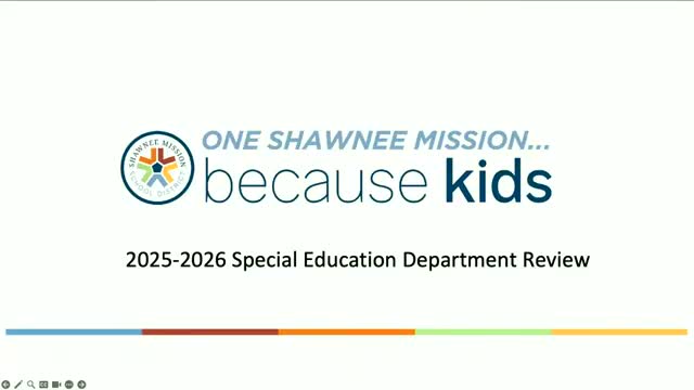 Shawnee Mission School District staff delivered a detailed special-education program update, describing legal obligations (FAPE and child-find), the continuum of services, staffing allocations tied to student Individualized Education Programs (IEPs), and a bold warning about state underfunding.