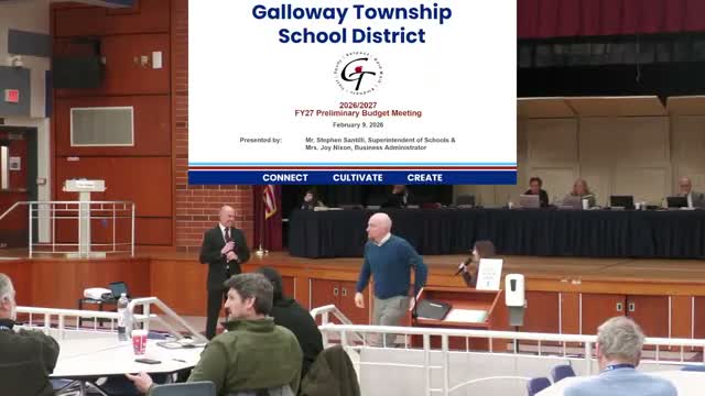 At the Feb. 9 meeting of the Galloway Township Public School District, Business Administrator Joy Nixon presented the districts preliminary 2026-27 budget assumptions and a compressed timeline ahead of state aid announcements.