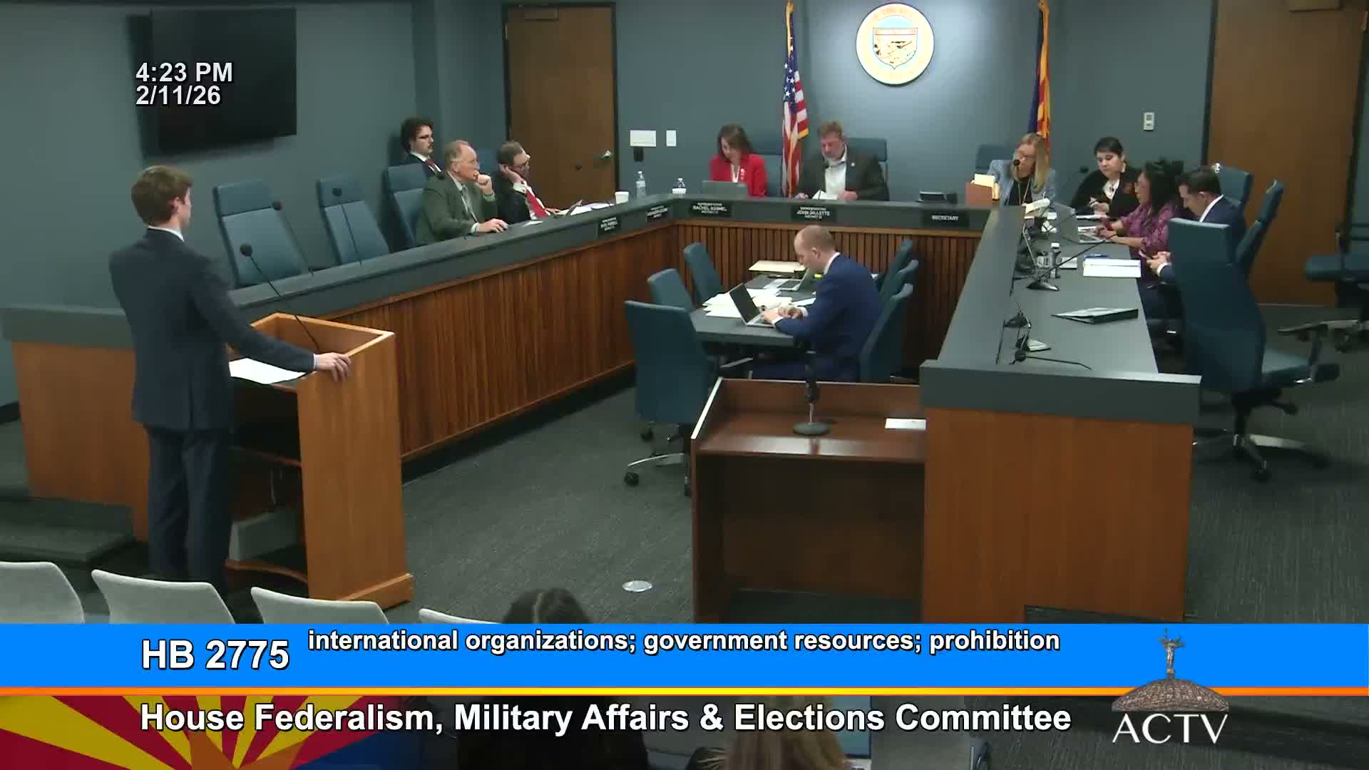 The committee heard HB2775 on Feb. 9, a bill that would prohibit state agencies, political subdivisions, and public institutions of higher education from knowingly participating in or accepting funds tied to certain international organizations. The Gillette amendment added a provision directing universities to submit proposed collaborations with outlined entities to the Arizona Board of Regents for review and authorized penalties for prohibited collaborations.