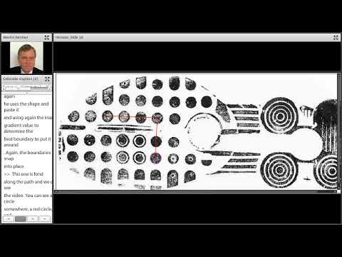 For feature extraction the group favors a hybrid human–computer approach. The presenter described a graphical markup tool in which human users label polygons and the software can auto‑adjust boundaries using image gradients; demo videos were referenced showing auto‑adjust, copy‑and‑paste of templates, path‑finding for repeated circular features, and automated overlays indicating detected boundaries.