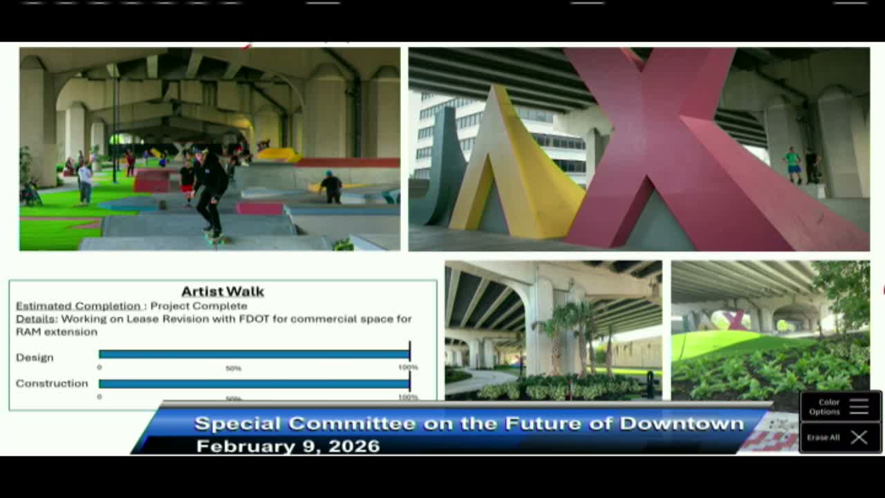 Parks Department director Daryl Joseph updated the special committee on downtown Feb. 9, saying new riverfront parks and playgrounds are heavily used, that Metro Park construction will start later this year with a 2027 completion target, and that private contributions and stipulations will fund ongoing maintenance.