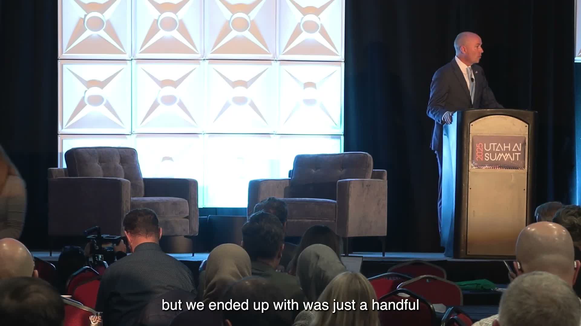 The remarks included concerns about education: the presenter warned against students using AI to write papers and professors using AI to grade them, framing such practices as diminishing human capacities. He praised recent state education work — the Utah State Board of Education's "portrait of an AI-infused learner and teacher" — as a step toward preserving mentorship and critical thinking.