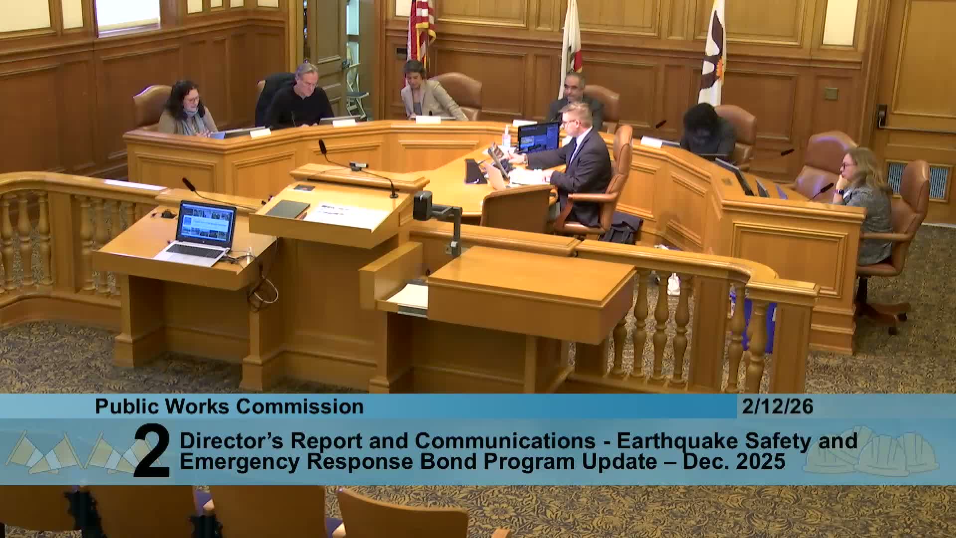 Short announced that Deputy Director Alaric de Grafenreid will leave Public Works at the end of the week for a role as director of compliance at the SFMTA Office of Civil Rights and thanked him for his service. She also invited volunteers to the department's neighborhood beautification day on Feb. 14 and summarized staff-led Black History Month activities.