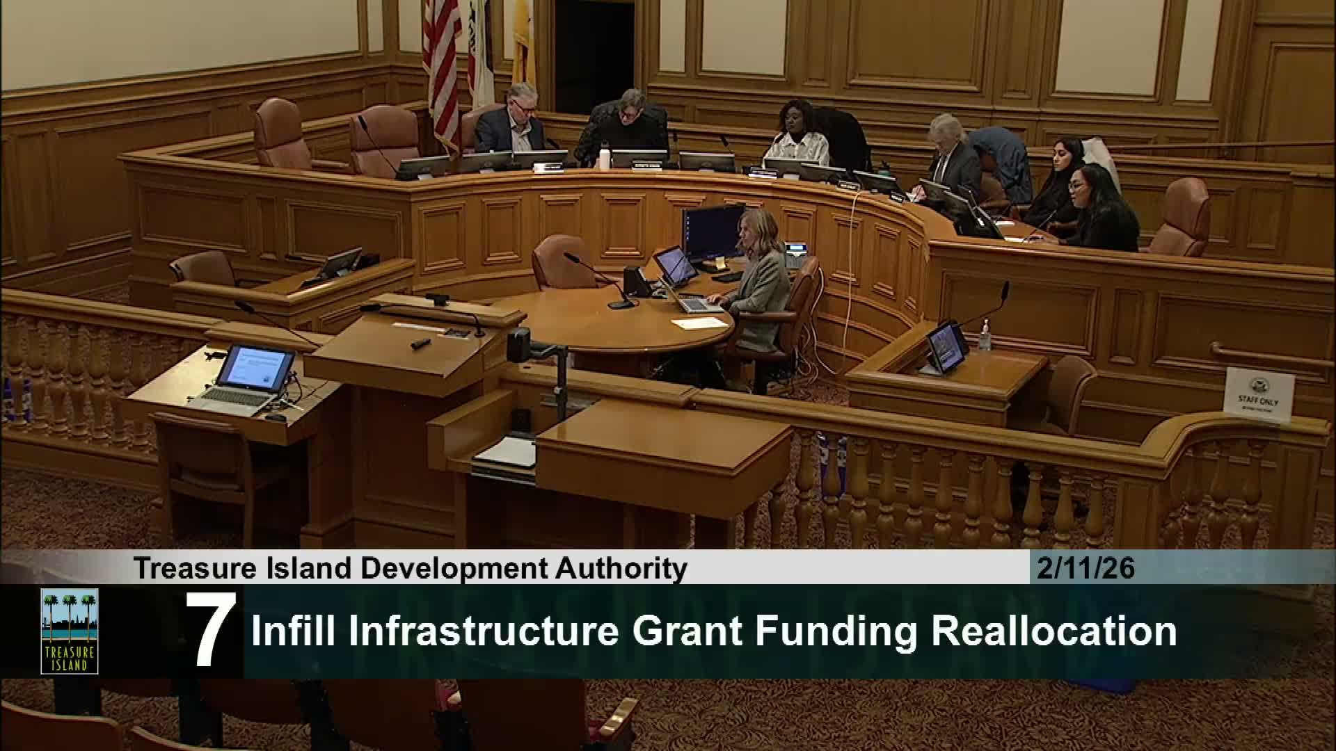 Acting TIDA staff told the board that approximately $12,000,000 in state Infill Infrastructure Grant (IIG) funds has been redirected to the Treasure Island Development Authority to support immediate infrastructure work serving new housing.