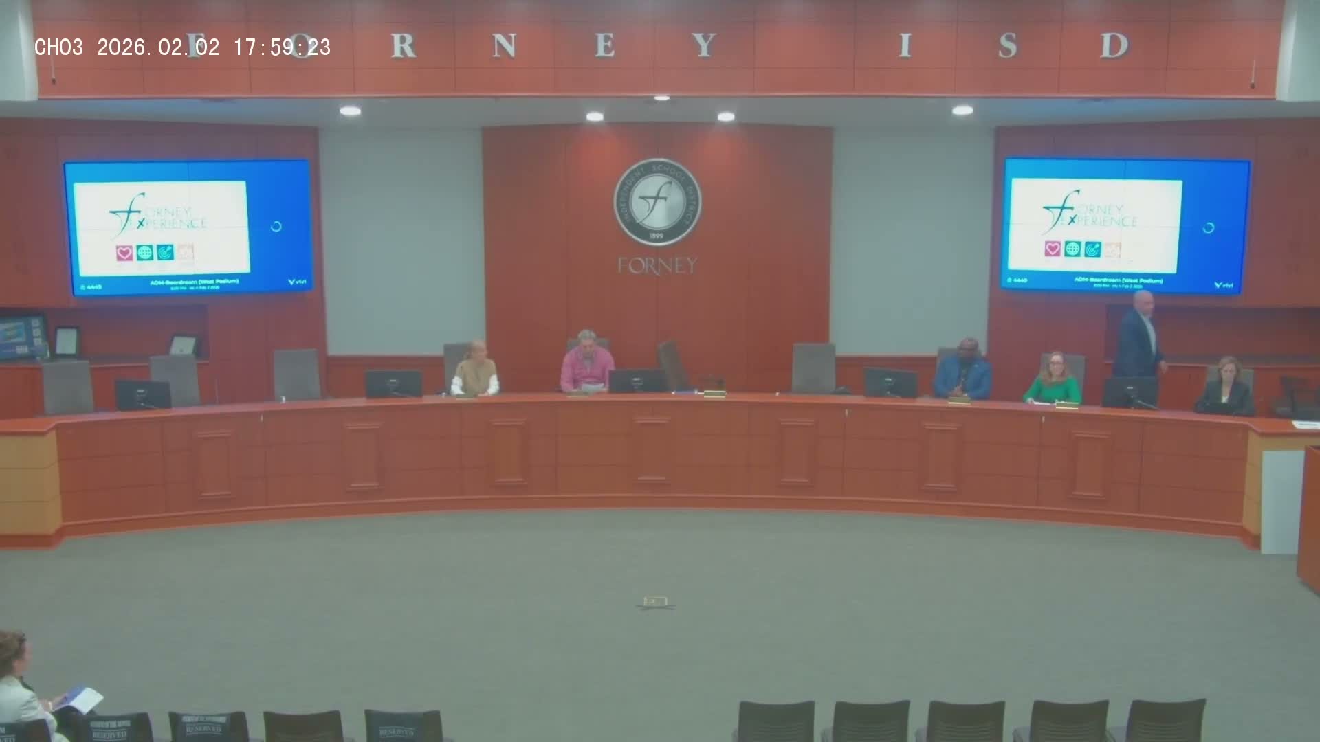 Forney ISD board opens meeting, schedules closed session on property, personnel and safety matters