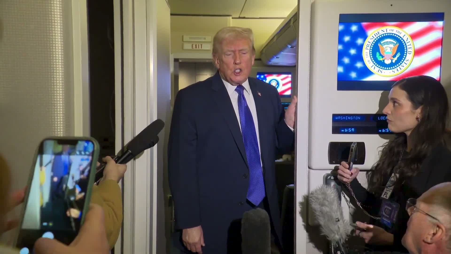 Trump told reporters the economy is improving and argued recent price moves show progress. "Low inflation, very low inflation," he said, and added that "gasoline is less than $2 in many places," a figure he presented as evidence the broader cost of living is easing. He attributed previously high prices to the prior administration and said, "we inherited a mess and we've brought our country back very, very powerfully."
