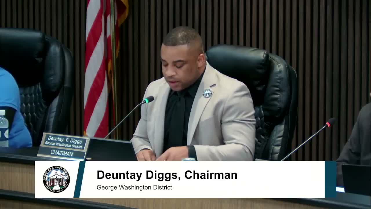 Chair Deonte Diggs and staff previously announced the board had unanimously scheduled a joint public hearing with the Stafford Planning Commission on Oct. 21 to consider new rules for data centers. That joint hearing was presented to the public as the forum for formal testimony and potential ordinance changes.