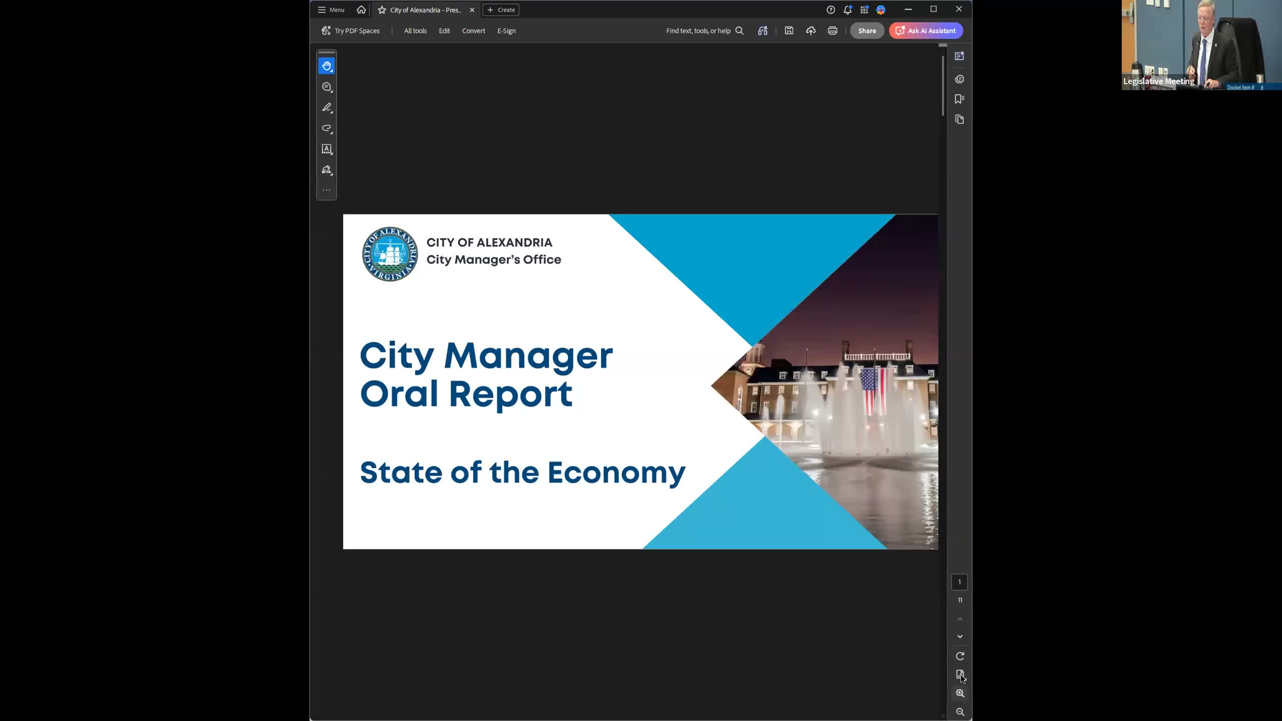 The presentation informed council discussion of economic conditions but did not include binding financial decisions; the budget schedule and joint ACPS/city calendar were presented as the framework for upcoming budget deliberations.