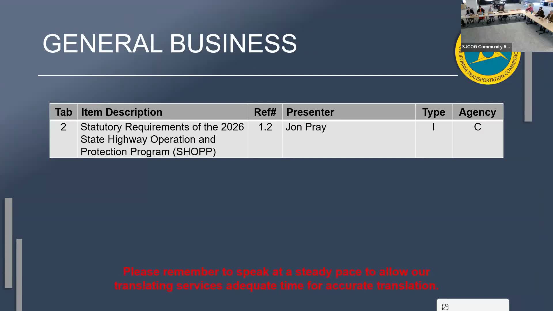 Caltrans told the California Transportation Commission that the draft 2026 State Highway Operation and Protection Program was rebalanced because allocation capacity is limited and recent storm/emergency costs exceeded $1 billion; the department emphasized asset preservation and an interactive project dashboard. The commission will consider adoption in March.