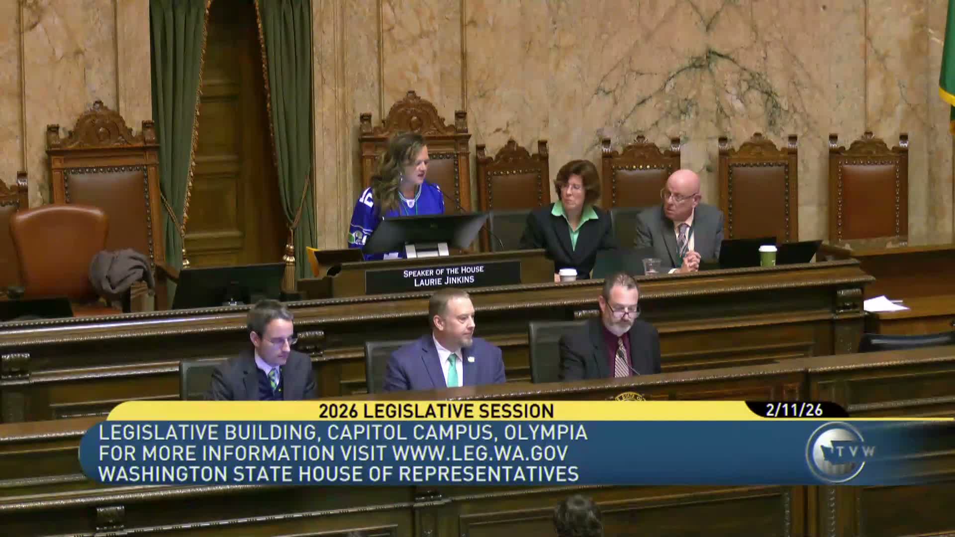 Separately, the House adopted House Resolution 4689 honoring the Seattle Seahawks by unanimous consent. The Rules Committee was relieved of several bills and those measures were placed on second‑ and third‑reading calendars. The House adjourned by unanimous consent until 9 a.m. Thursday, February 12.
