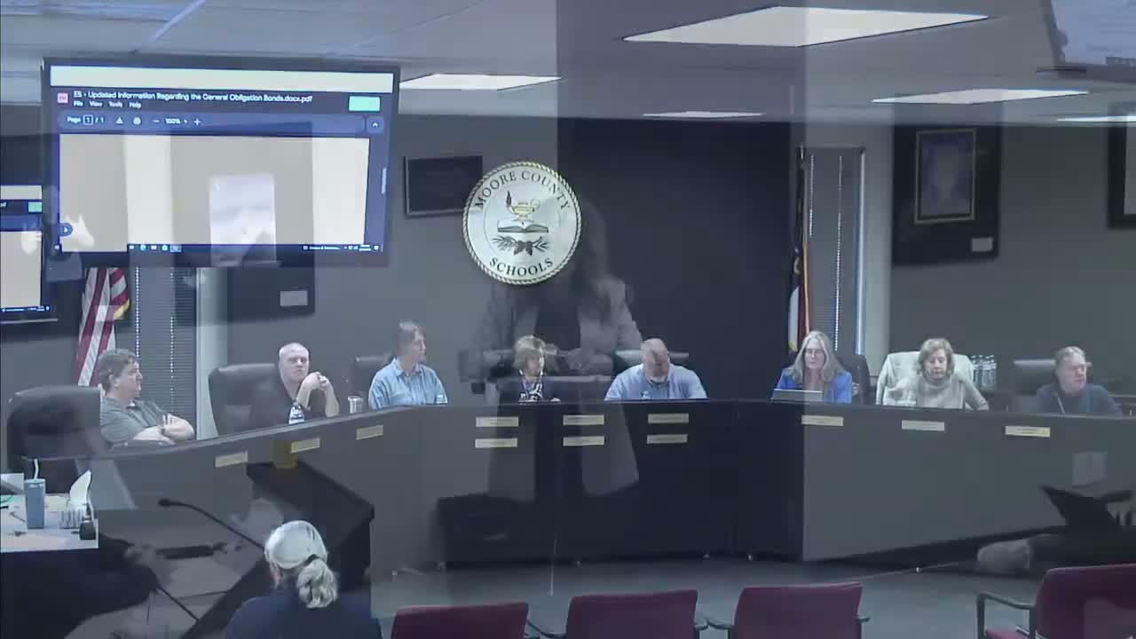 The Moore County Board of Education voted 6–1 to endorse building a smaller replacement Carthage Elementary (about 400–450 students) on the existing site funded by county commissioners rather than a general‑obligation bond, and unanimously halted a planned $3.3 million lottery‑fund request for an IT building while staff evaluates a 3.5‑acre New Century parcel.