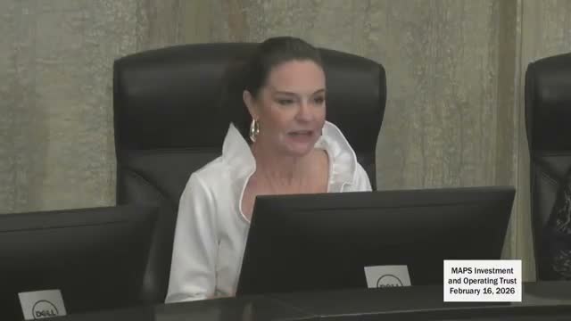 The Oklahoma City MAPS Investment and Operating Trust on Feb. 16 received quarterly and monthly investment reports showing double-digit trailing returns in some categories and approved changes to its investment policy statement to better reflect current allocations.