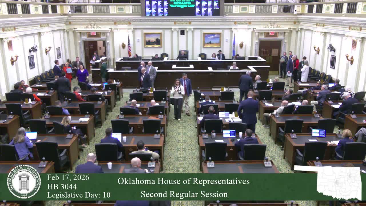 The Oklahoma House unanimously passed House Bill 3044, renewing a measure that lets taxpayers donate a portion of their tax refunds to an Oklahoma Department of Veterans Affairs equipment and capital improvements program. The bill was advanced and passed on third reading by voice and roll call (95–0).