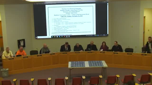 Student representative Troy reported that six students from Hazleton Area High School and the Career Center began a Chief Science Officer (CSO) leadership program after training at Johnson College; the district's Fine Arts Club entered PennDOT's Paint the Plow contest with public voting on Dec. 14 and student projects supporting veterans were highlighted.