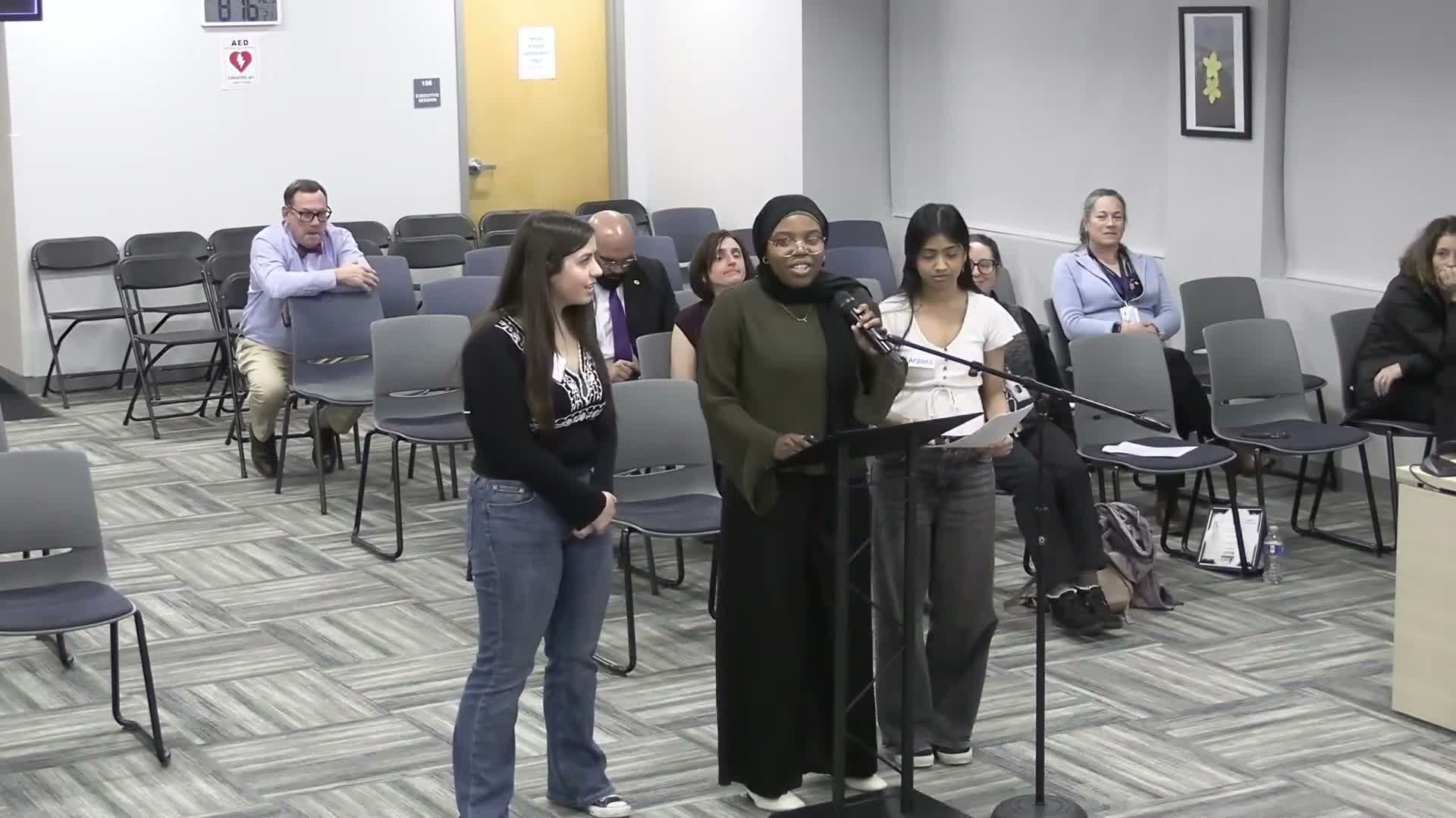 Student leaders presented a proposal at the Feb. 11 meeting asking Erie Public Schools to expand access to menstrual products inside school restrooms instead of limiting supplies to nurse offices.