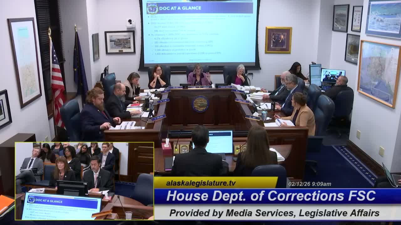 DOC staff told the House Finance subcommittee that Title 47 holds (mental‑health holds) and Title 12 competency restoration cases can leave people in DOC custody while they wait for limited Alaska Psychiatric Institute (API) capacity; DOC provides up to 10 beds at the Anchorage Correctional Complex 'Lima mod' that API staff use for restoration services, and waits of up to about 90 days are possible depending on bed availability and legal contesting.