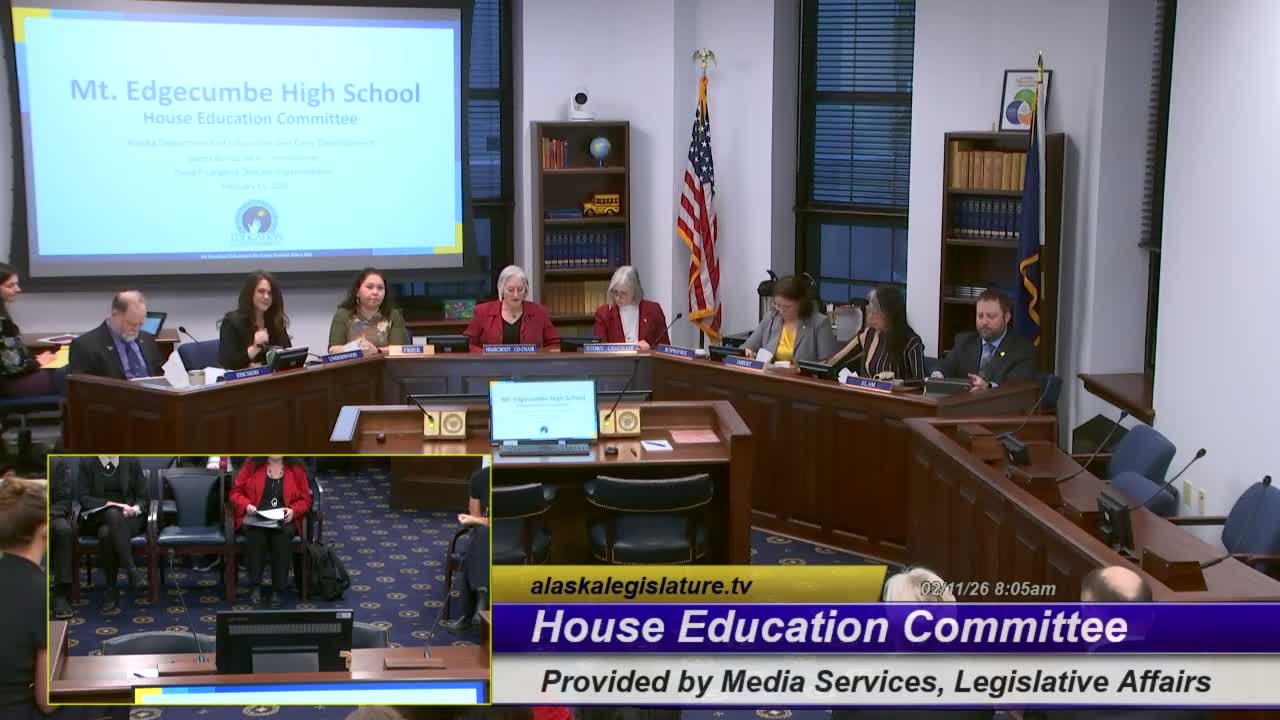 Committee members pressed DEED officials about governance and oversight because Mount Edgecumbe is managed under the Department of Education and Early Development and not a locally elected board. Bishop and Langford said the State Board of Education approves hires and that an advisory board provides local input; Bishop noted a state board member sits on the advisory board to maintain communication.