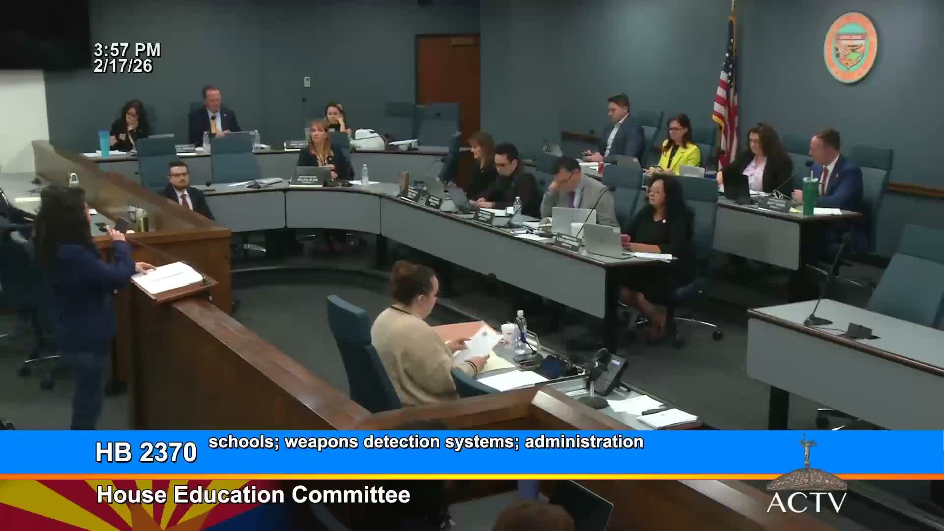 HB 2370 would require a school superintendent or equivalent officer to report modifications to weapons‑detection system settings to their governing board and sets statewide expectations for monitoring and accountability. Sponsor cited a classroom stabbing as the impetus; members debated stakeholder feedback and clarity of language.