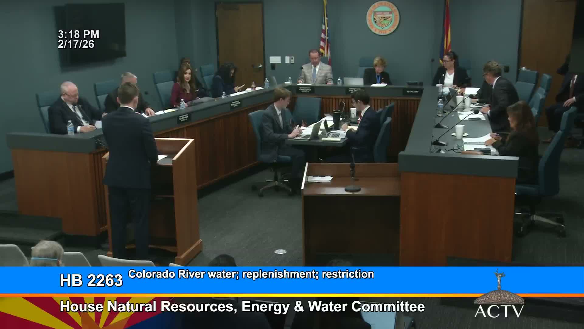 House Bill 2263, as amended, would restrict use of main-stem Colorado River water for replenishment in AMAs to permitted facilities on state or private land or owned by multi-county conservation districts. Central Arizona Project and tribal representatives warned the committee that the measure could exclude existing tribal, municipal and USF storage locations and impede flexibility.