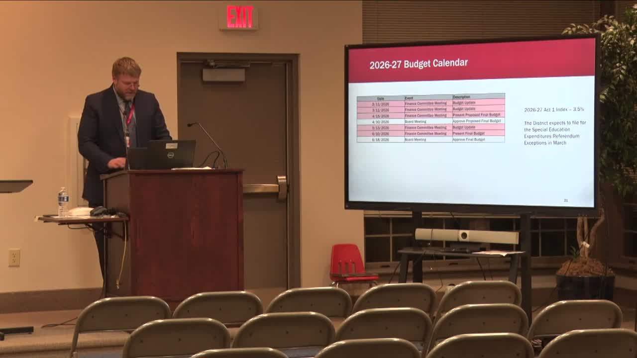 Business manager outlines budget calendar, Act 1 index and possible special‑education exception eligibility