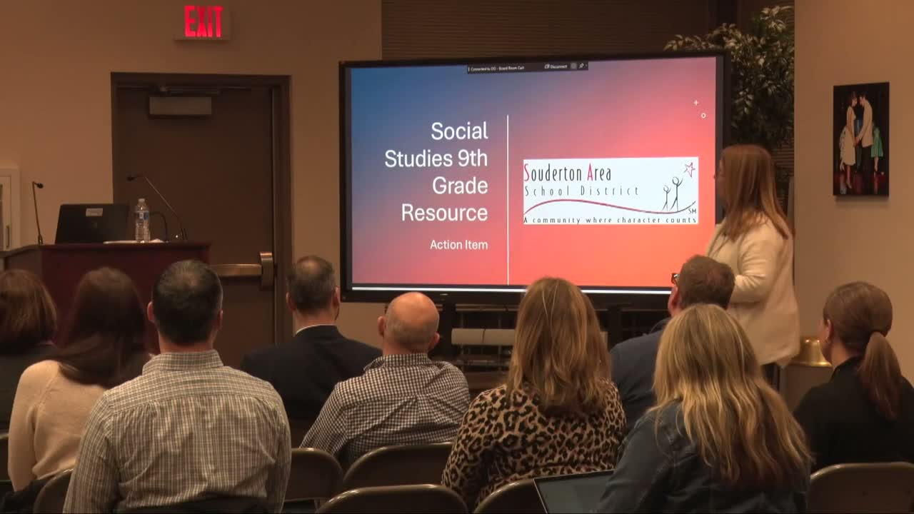 The Souderton Area SD curriculum leadership recommended on the committee floor that the district adopt TCI’s History Alive as the primary high‑school U.S. history resource. Dr. Kennedy Riley, who led the presentation, said the department reorganized the course from a theme‑based to a chronological sequence to help students place events in order and that "content was not changed; it was simply reorganizing from theme to a chronological sequence of history."
