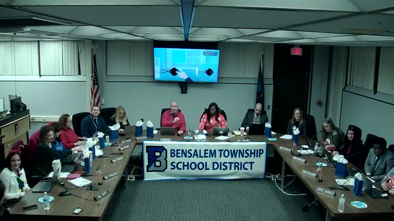 Students from Faust Elementary presented a "Holidays Around the World" unit at the Bensalem Township School Board meeting, describing traditions and how families celebrate across cultures.