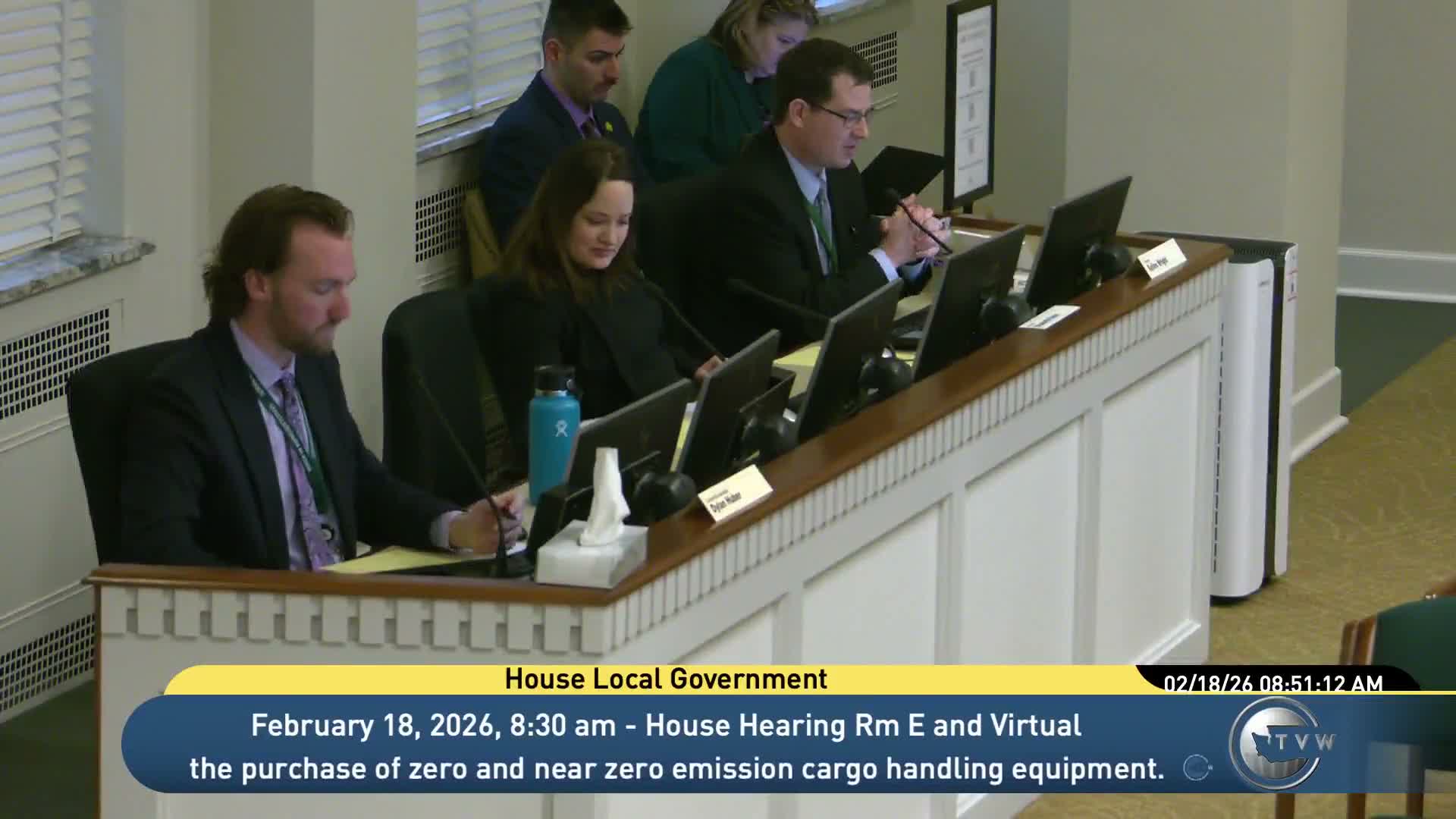 The committee heard Senate Bill 5995, which would remove a 2031 sunset on a 2021 law that authorized port districts to use public funds to buy zero- and near-zero-emission cargo-handling equipment while prohibiting purchase of fully automated equipment using public funds.