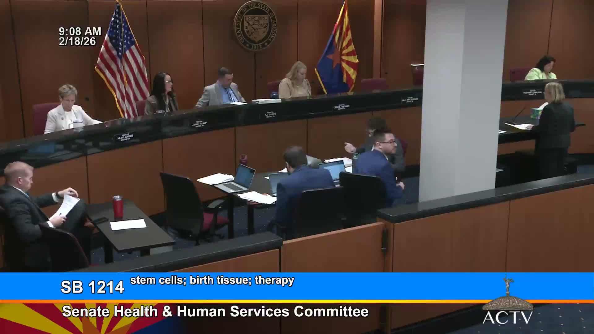 SB 12 14, presented to the committee as the Arizona Stem Cell Therapy Act, would establish requirements and restrictions for the use of stem cell and birth-tissue therapies in the state. The measure would bar therapies or research using cells or tissues “derived from an aborted fetus or embryo,” require physicians to obtain products only from federally compliant or certified facilities, and mandate specific disclosures and signed informed-consent forms for therapies not approved by the U.S. Food and Drug Administration.