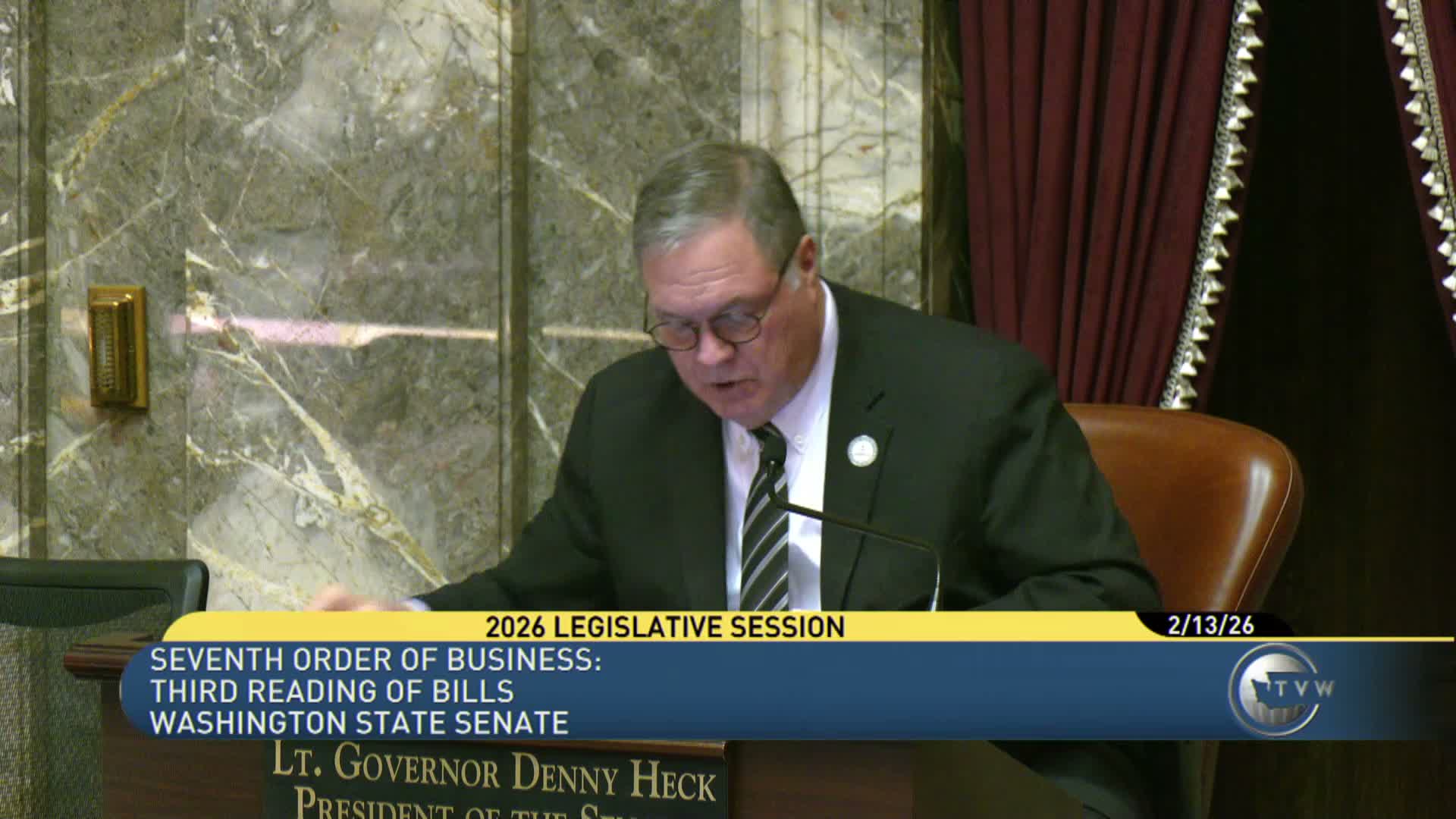Public safety: Senate Bill 5890, a measure addressing excessive speeding that had been revised with input from law enforcement, was advanced and passed. Supporters cited traffic‑safety data; the floor record shows passage with 45 ayes, 3 nays and 1 excused.