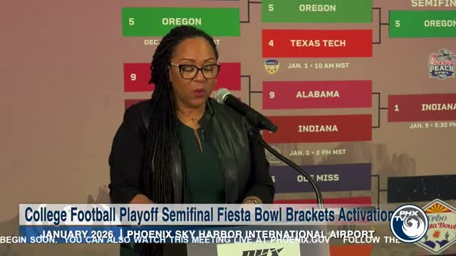 Roxanne Favors, the airport’s assistant aviation director and chief revenue officer, thanked volunteers and airport partners and said “we are proud that more than a 100 aviation department family and employees are volunteering to be part of and participate in tomorrow's Fiesta Bowl parade in Central Phoenix.” She added that Sky Harbor staff, concessionaires and airline partners are ready to welcome the teams and the thousands of visitors expected for the games.