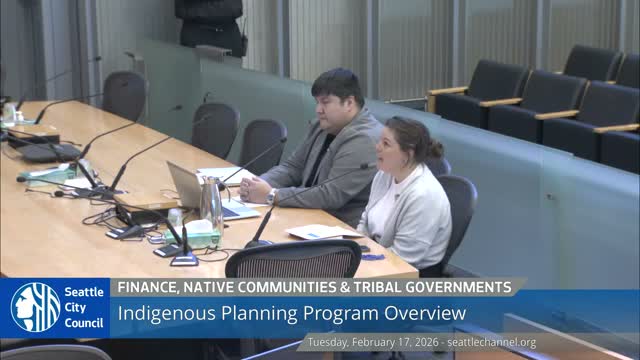 The Seattle City Council Finance and Native Communities & Tribal Governments Committee received a presentation Feb. 17 on Indigenous planning and ongoing work with tribal governments and Native communities.