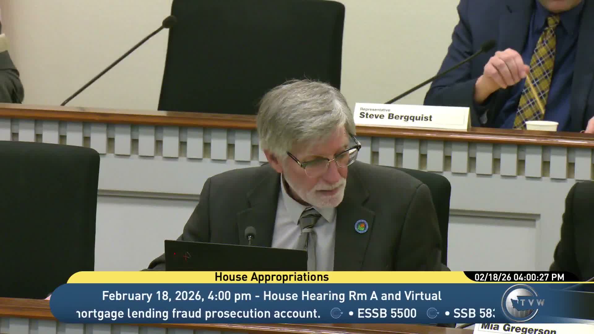 The Appropriations Committee received a staff briefing and public testimony on Senate Bill 5,109, which would increase the $1 surcharge collected on each recorded deed of trust to $5 and remove the bill’s current 06/30/2027 sunset. Jessica Van Horn, staff to the committee, said the Department of Financial Institutions uses revenue from the mortgage lending fraud prosecution account to contract with county prosecutors for investigation and prosecution of mortgage‑related fraud.