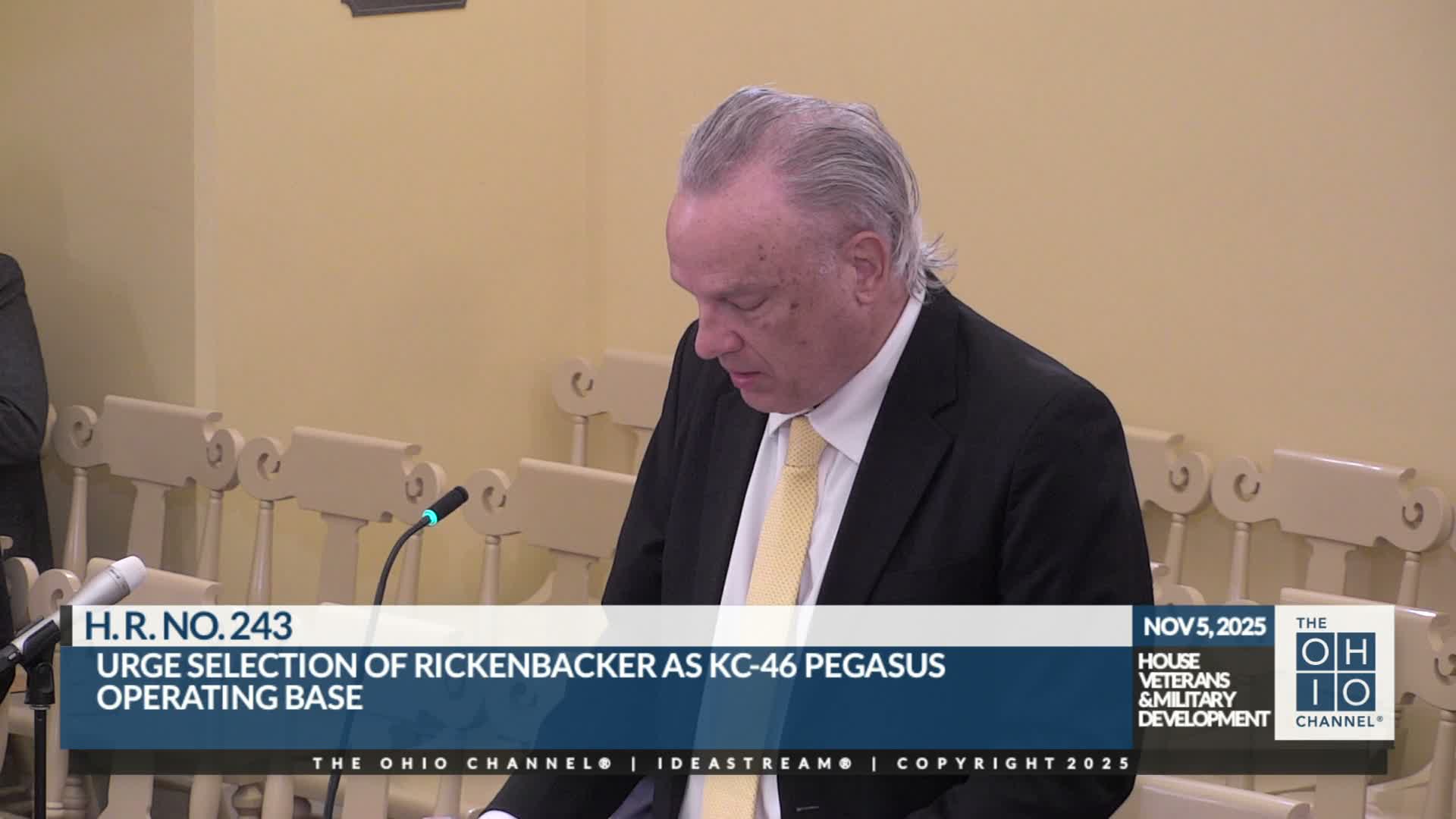 Proponents including the Ohio Chamber and Central Ohio Defense Group told the Veterans and Military Development Committee that Rickenbacker Air National Guard Base is well-suited to host KC-46 Pegasus tankers and urged passage of HR243 to send a state-level signal to decision-makers.