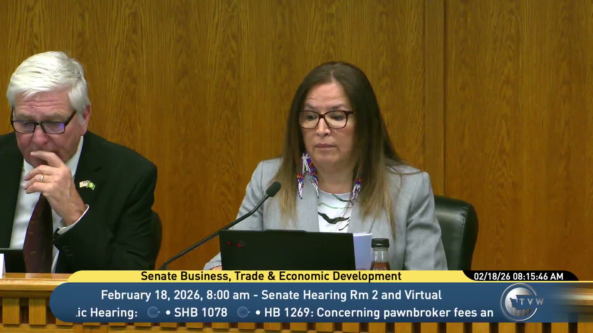 The committee heard Substitute House Bill 1269 on Feb. 18, a measure proposing multiple changes to the pawnbroker statute: shorten the statutory loan term from 90 days to 60 days, increase the maximum interest rate for loans over $100 from 4% per 30‑day period to 5%, replace a sliding document‑preparation fee with a flat 15% fee for loans of $50 or more, raise optional storage fees (including higher daily storage for firearms) and allow an online payment option for mutually agreed loan extensions.