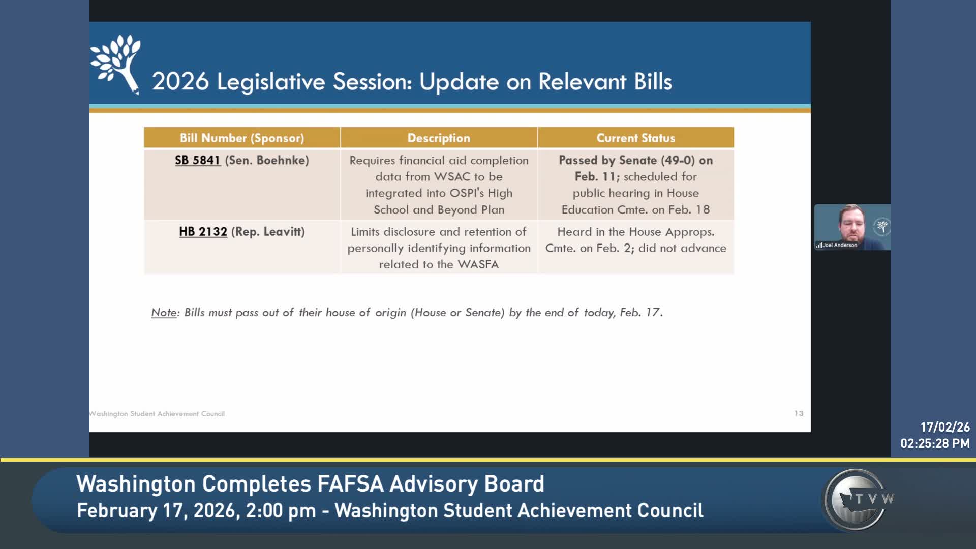 Washington Completes FAFSA Advisory Board (WASAC) · February 17, 2026