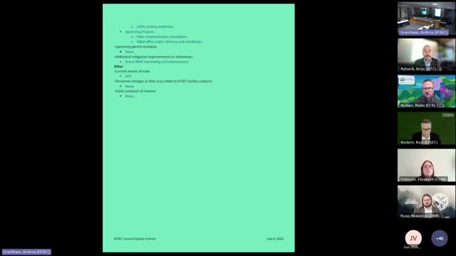 FSEC site specialist Sarah Randolph briefed the council that staff recommended issuance of the permit package and said the public comment period had concluded with no substantive comments to change the staff recommendation. Eric Pace of Grays Harbor Energy, on the call, confirmed there was nothing further to add.