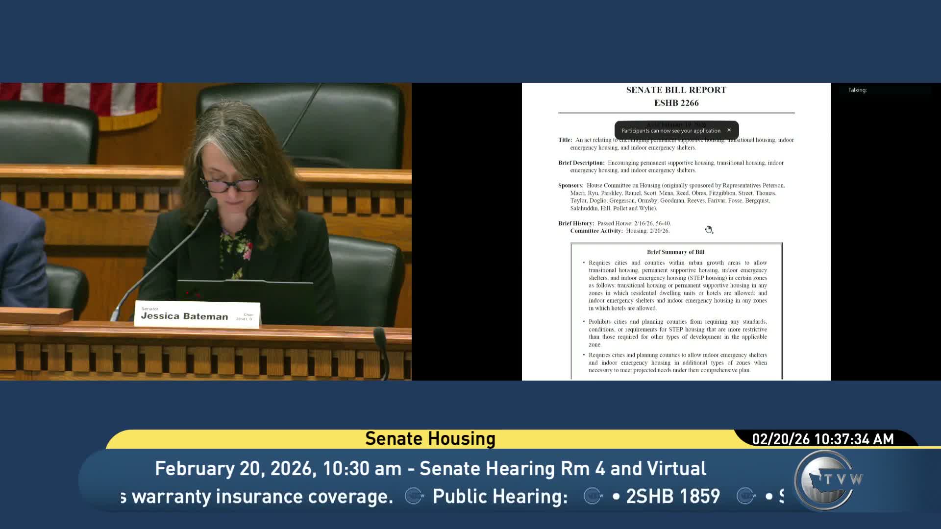 The Senate Housing Committee spent a large portion of its Feb. 20 hearing on Engrossed Gross Substitute House Bill 22‑66, a statewide standard to ensure cities and planning counties allow 'step housing' — an umbrella that includes permanent supportive housing, transitional housing, indoor emergency shelters, and indoor emergency housing.