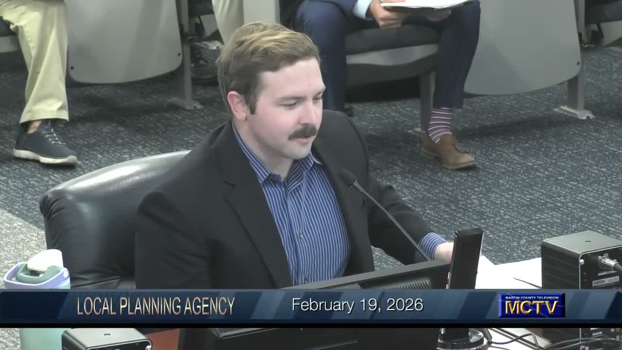 The Martin County Local Planning Agency on Thursday approved a text amendment to add excavation standards to Article 11 of the county Land Development Regulations for the Newfield planned mixed‑use village.