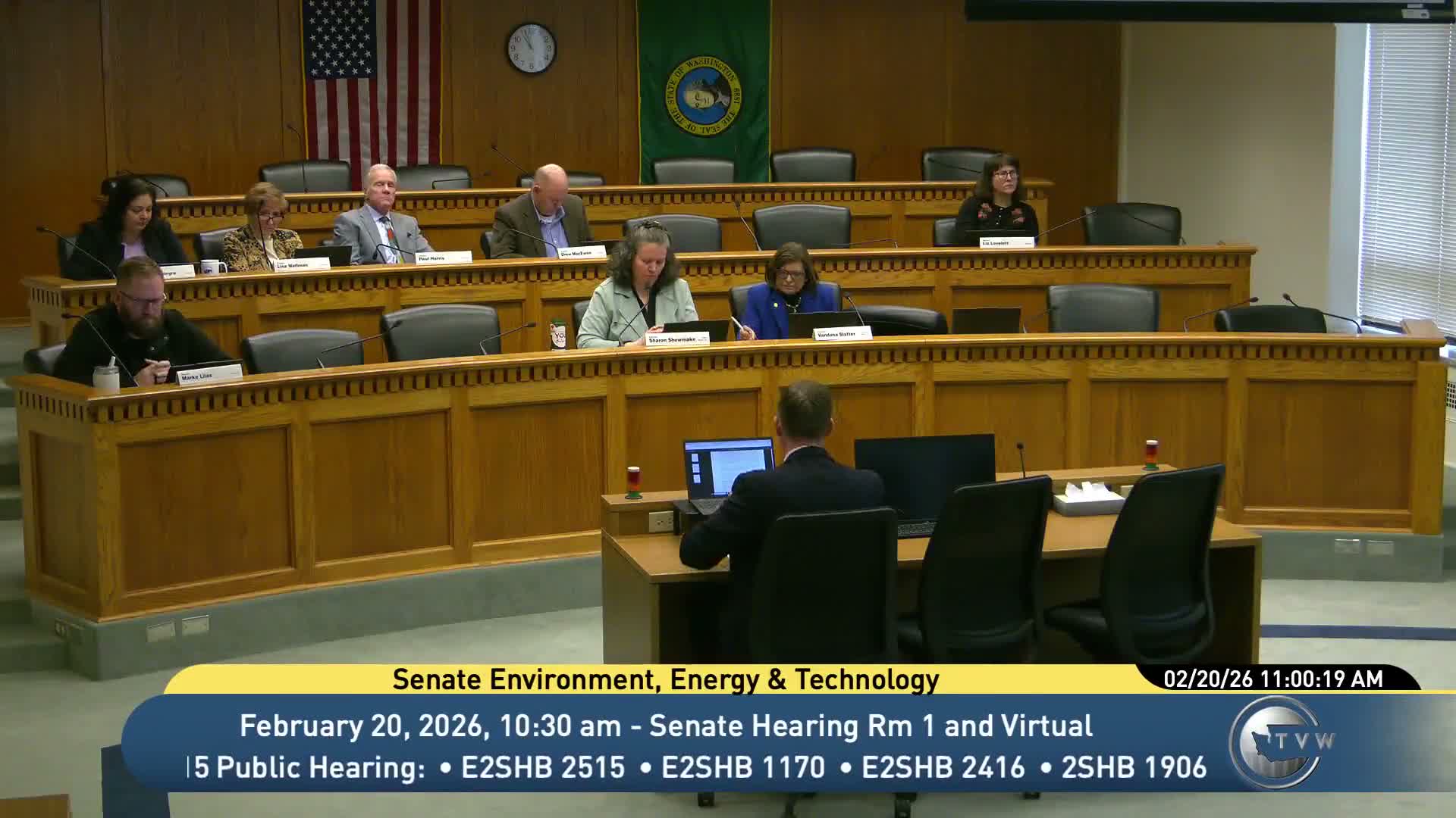 Committee staff and a range of local officials, labor representatives and agency staff testified on Engrossed House Bill 2416, which addresses the treatment of certain waste‑to‑energy facilities under the Climate Commitment Act (CCA).