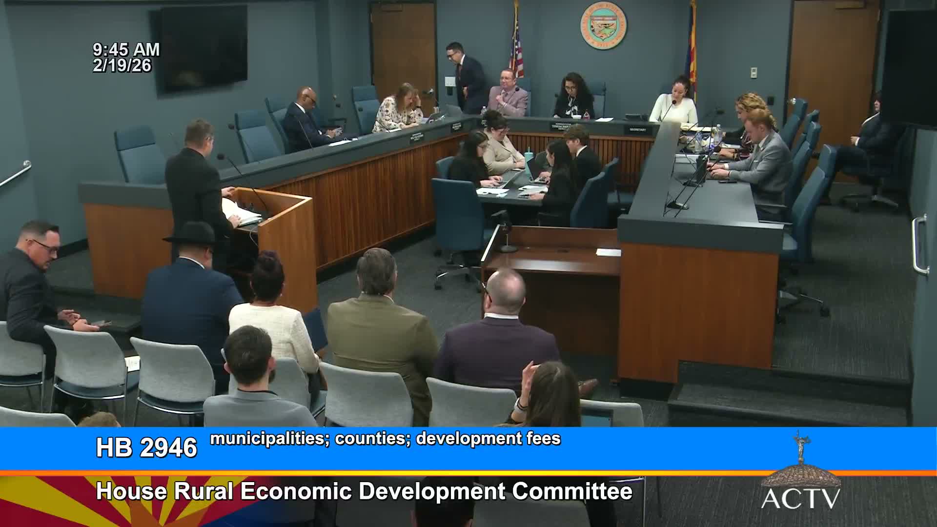 House Bill 2946, which would revise when and how municipalities collect development fees and prohibit assessing fees on accessory dwelling units (ADUs), passed the committee as amended on Feb. 29 after testimony from the sponsor and opposition from city and municipal groups who warned it would shift costs to existing taxpayers.