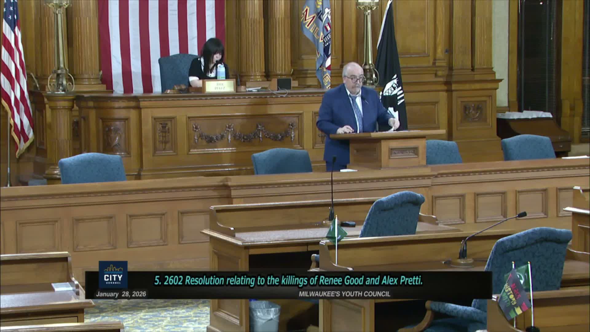 The Milwaukee Youth Council adopted Resolution File 2602 condemning the killings of Renee Goode and Alex Preddy, calling for thorough, transparent investigations and commending youth activism such as school walkouts; members pressed for transparency around Border Patrol/ICE actions and for schools to support student voices.