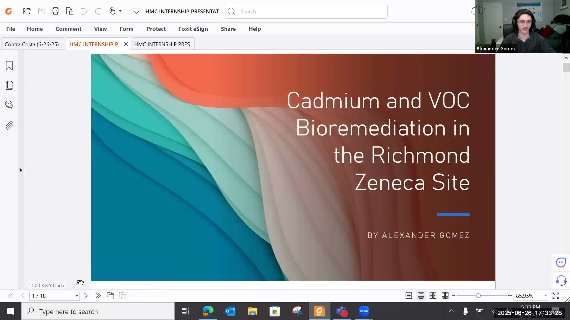 Alex, an HMC intern and recent San Francisco State graduate, presented a review of contamination at the Richmond Seneca site and described potential remediation strategies using permeable reactive barriers (PRBs) augmented with zero-valent iron (ZVI) nanoparticles. Alex said ZVI PRBs have produced large reductions in chlorinated compounds in pilot studies and could be adapted for metals and VOCs but cautioned that large-scale ecotoxicity and nanoparticle-aggregation risks require additional study before full deployment.