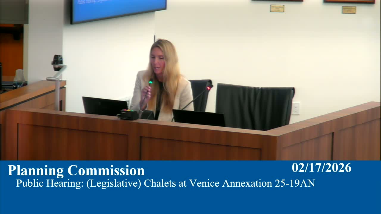 Commission recommends annexation and future land‑use change and approves rezoning to PUD for 'Shelley’s/Chalets at Venice' despite neighbor concerns