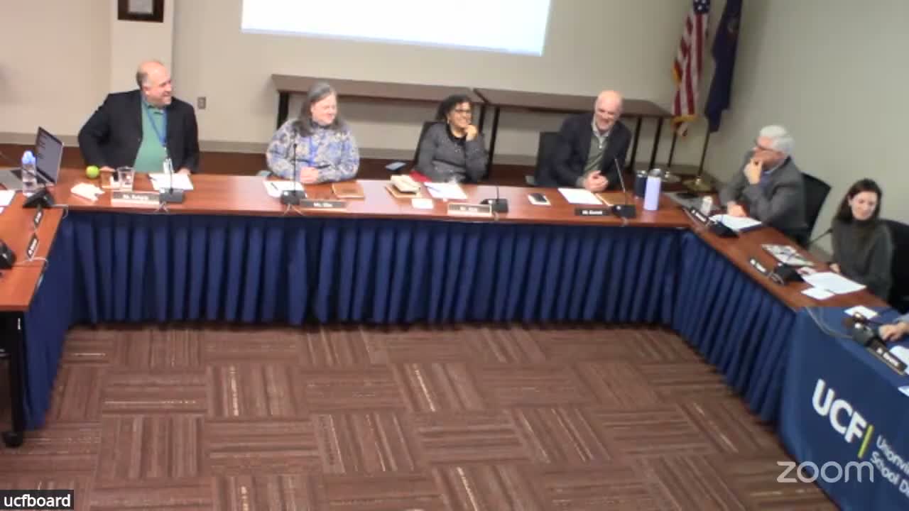 Unionville‑Chadds Ford School District Board members on Feb. 18 approved a slate of routine and formal items, voting unanimously on multiple bundled motions that ranged from policy changes to equipment purchases and a personnel restructure.
