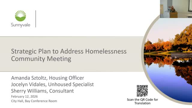 City of Sunnyvale housing staff presented a draft 2025 strategic plan to address homelessness at a public meeting, outlining five goals and asking residents to provide feedback at in‑room stations or online.