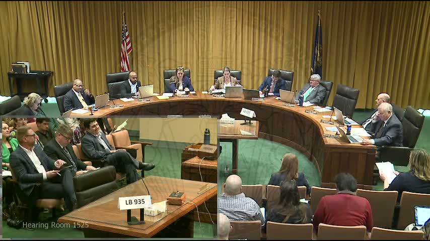 The hearing closed with proponents asking the committee to advance LB935 for further consideration. No final action was taken at the session.