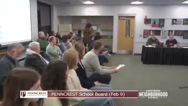 Representing Penncrest educators, Debbie Miller urged the board to prioritize staff and preserve programs, asking for a district-authorized time audit and three 'high-impact, low-cost' changes to return planning time to teachers working a median 48-hour week.