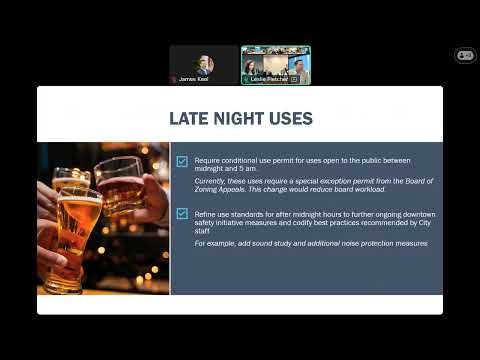 The proposal would make late-night operations subject to conditional use permits: any use open past midnight would need a permit and would be subject to new use standards, including a required sound study and additional noise protections, staff said. "If you're open between midnight and 5," Douglas said, "you will have to get a conditional use permit from the planning staff." The change is aimed at reducing night-time impact on nearby residences while streamlining reviews that had often gone to the BZA.