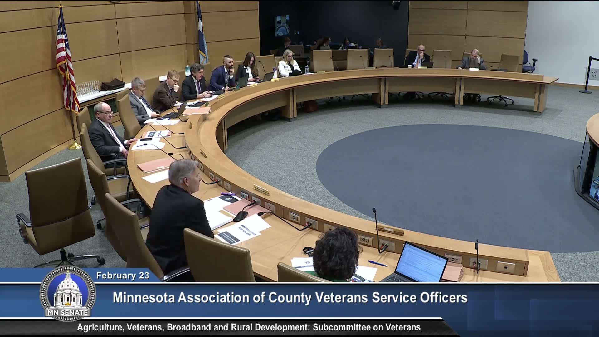 Larry Fonder, legislative chair of the Minnesota Association of County Veterans Service Officers (MACVSO), and several county VSOs testified to the Senate subcommittee on Feb. 23, 2026 about the role and needs of county veteran service officers (CVSOs).